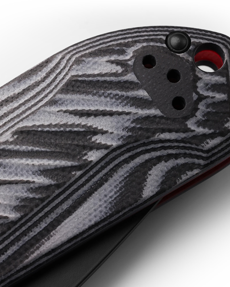 Benchmade Freek - форма і зміст в одному ножі. Перший варіант в сімействі Freek, який об'єднує два неймовірно міцних матеріалу: G10 і CPM-M4. Сіро-чорний багатошаровий G10 фрезерований для забезпечення відмінного зчеплення і стилю, в той час як червоний базовий шар G10 і розпірки корпусу з анодованого алюмінію надають рукояткам додатковий цікавий відтінок.