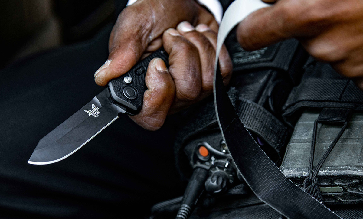 Тактичний ніж не завжди повинен бути агресивним величезним "свиноколом". 8551bk Mediator-це новітня розробка серії black class в модельному ряді "автоматів" від Benchmade. Mediator ™ являє собою плейновий клинок формату зворотного танто з рукоятками з фрезерованого композиту G10. Незважаючи на існуючу думку, що "автомати" не особливо придатні в навантажень, запевняємо, що медіатор швидко врегулює ці сумніви (mediator - регулятор, посередник, дозвільник).