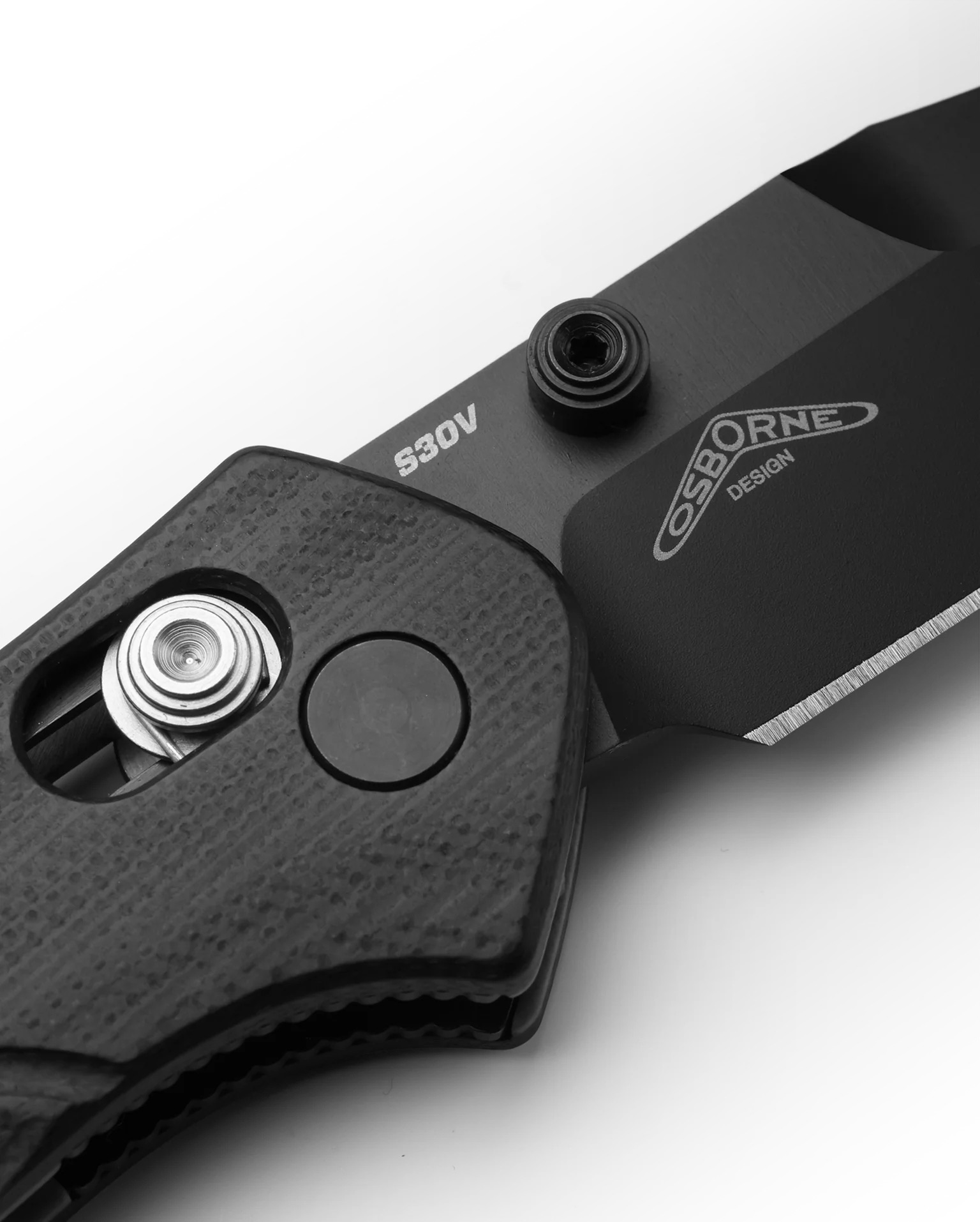 Клинок зроблений з порошкової сталі CPM S30V, що гарантує довге утримання гостроти ріжучої кромки і відмінну стійкість до корозії. Форма леза-зворотний танто з прямими спусками від 2/3 клинка. При товщині клинка в 2,6 мм, така форма не тільки дає хороший рез, але і гарантує певний запас міцності кінчика леза при всяких «колупаються» роботах. Довжина ріжучої кромки перевершує довжину багатьох EDC-ножів з порівнянними розмірами клинка.
