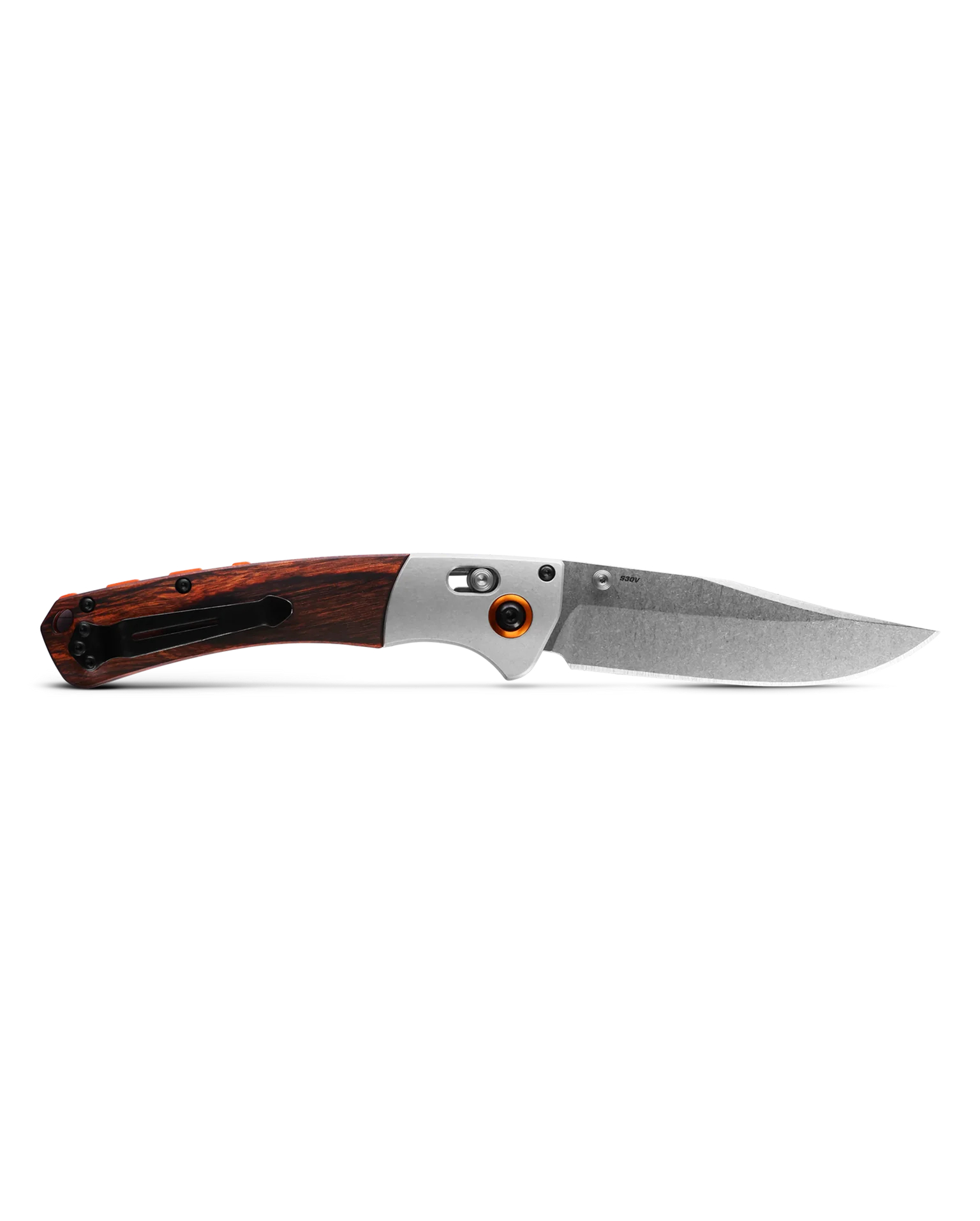 У відкритому положенні клинок фіксується за допомогою запатентованого замка Блокування Осі. Такий вибір забезпечує виняткову надійність і гарантує, що клинок сам не відкриється при натисканні в самий невідповідний момент. Ця конструкція зручна при однорукому відкриванні, а також підходить для лівшів. Для швидкого відкриття леза передбачений двосторонній шпенек.